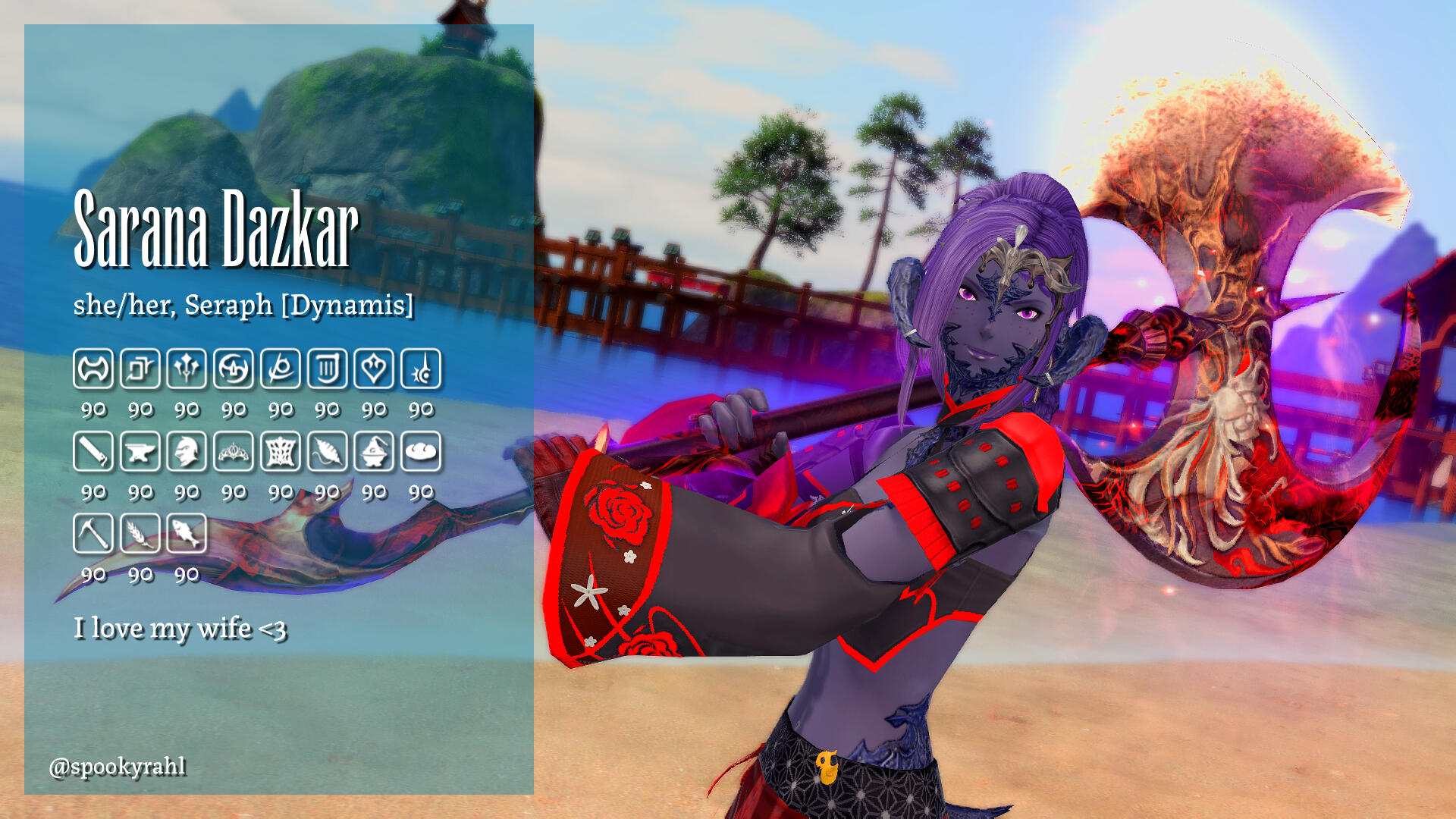All of my FFXIV info! Characters, Eorzea Collection links, and housing info! Links to socials are at the bottom! I spend a lot of my time leveling, crafting, gposing, making glam, and doing events with various communities and friends! Wanna be my friend too? Awesome! Hit me up on Twitter, Twitch, or even in-game!